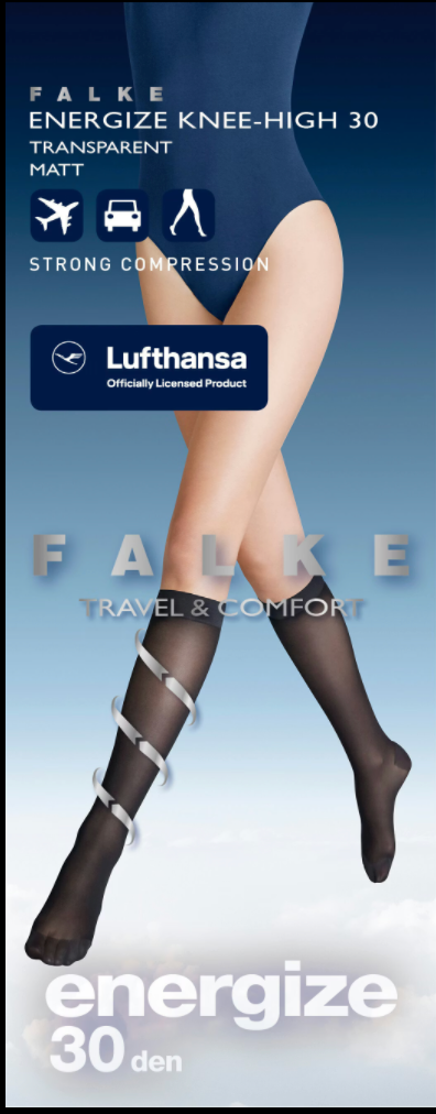 Dieser Kniestrumpf des FALKE Travel & Comfort Sortiments sorgt für eine aktive Belebung und Energie für die Beine dank Kompressionseffekt. Tanken Sie kontinuierlich neue Kraft bei extremen Belastungen im Sitzen, Stehen und Gehen, sowie auf längeren Flugreisen. Beugen Sie geschwollenen, schweren Beinen sowie frühzeitigen Formverlusten vor und fühlen Sie sich den ganzen Tag über fit und gestärkt. Exzellenter Tragekomfort und uneingeschränkte Bewegungsfreiheit. Feines mattes Maschenbild für ein natürlich schönes Aussehen. Bitte die Beine nicht eincremen. 30 den appearance. Offizielles Lufthansa Lizenzprodukt.